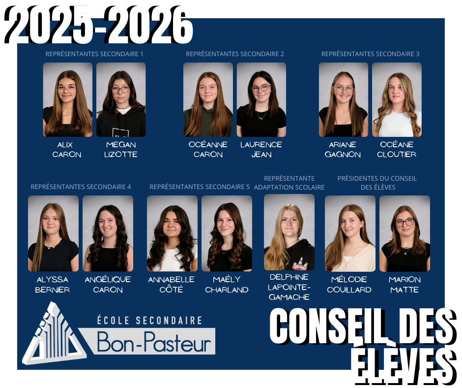 C’est avec grand plaisir que nous vous présentons notre Conseil des élèves pour l’année scolaire 2025-2026!